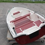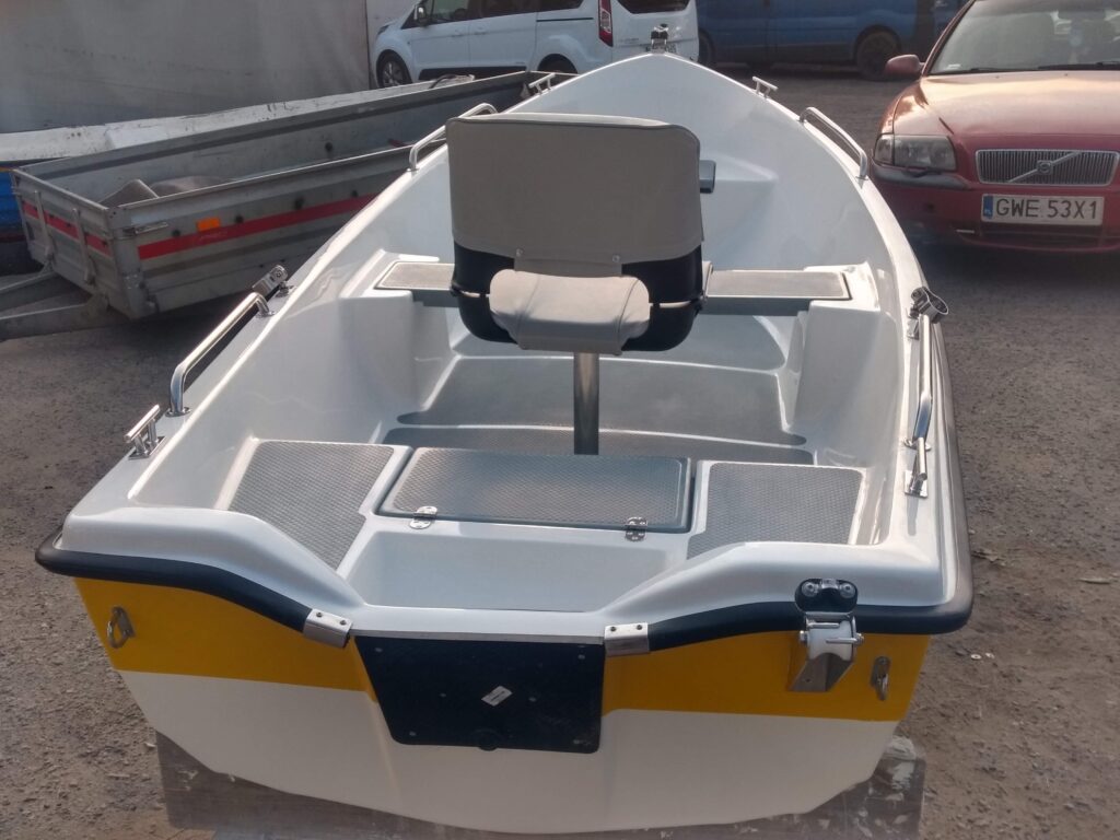 Łódź wyposażona jest w ławkę i dwie obszerne bakisty.